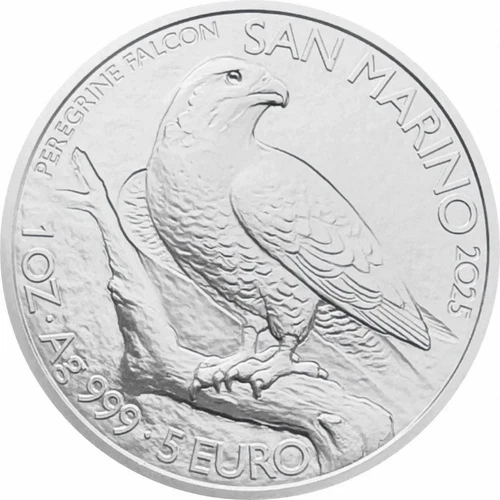 • San Marino 5 EURO 2025 Peregrine Falcon 1 Oz Silber 999 ST / BU