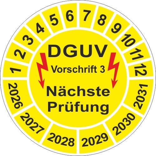 UVV Prüfplaketten Geprüft nach DGUV V3 Nächste Prüfung 5065c 2026 - 2031 Gelb