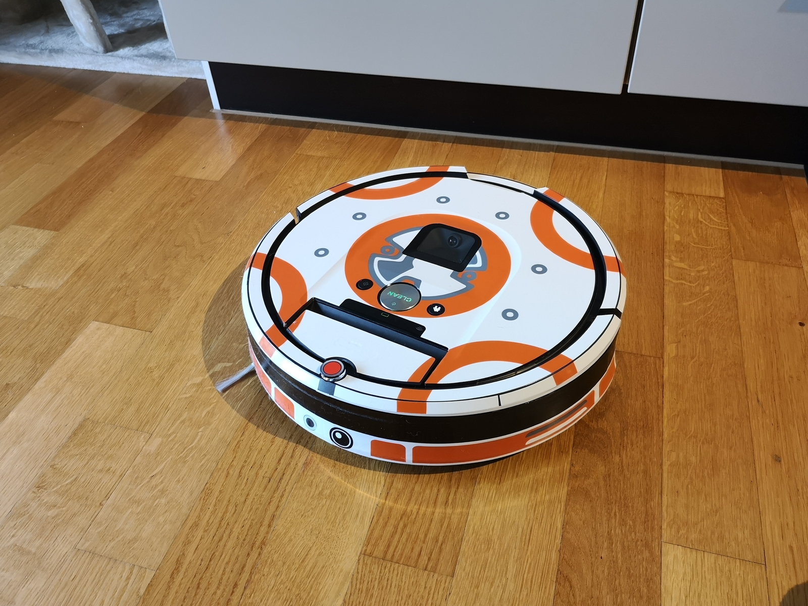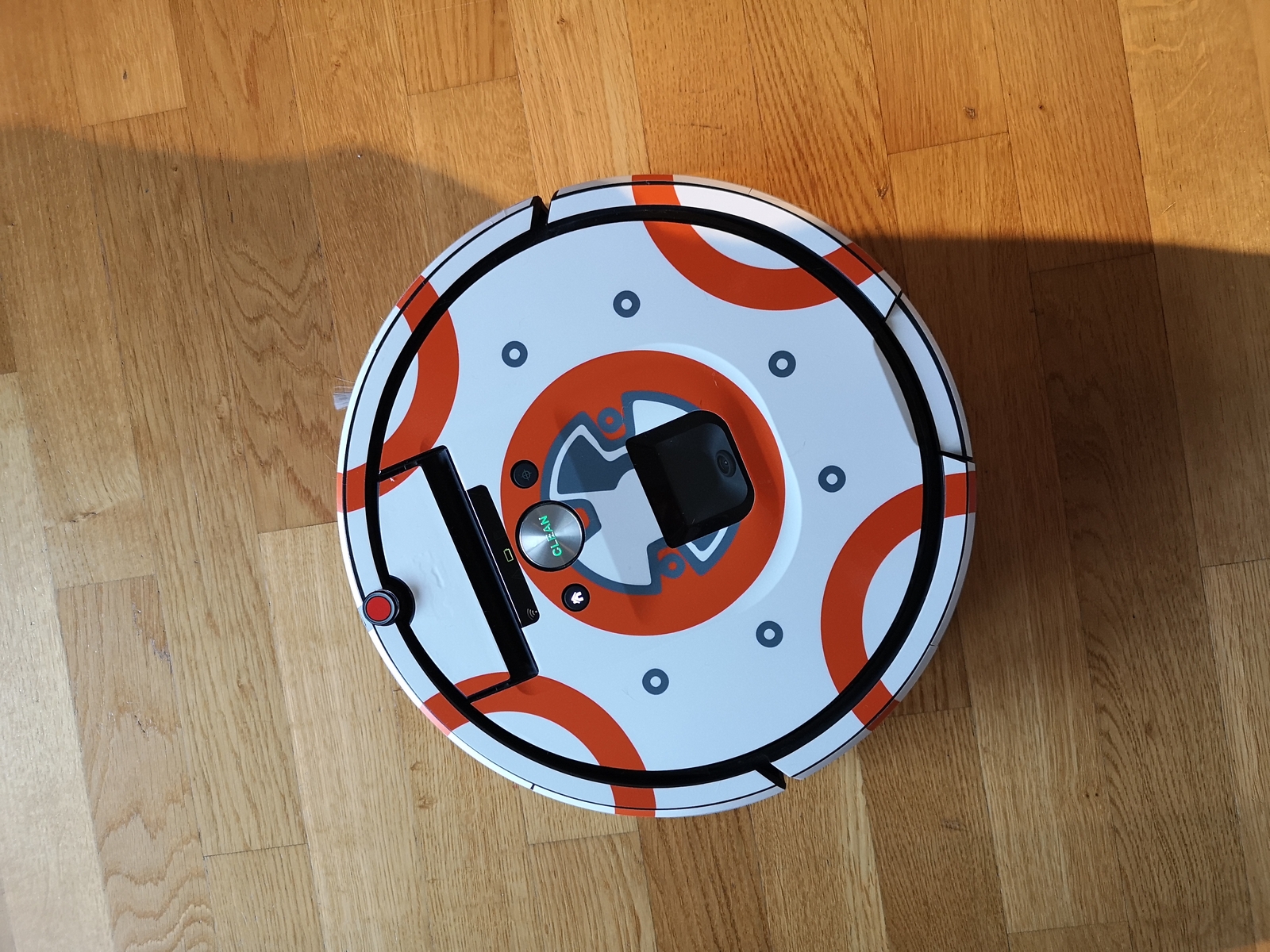 - includes decals for the top and sides of your roomba