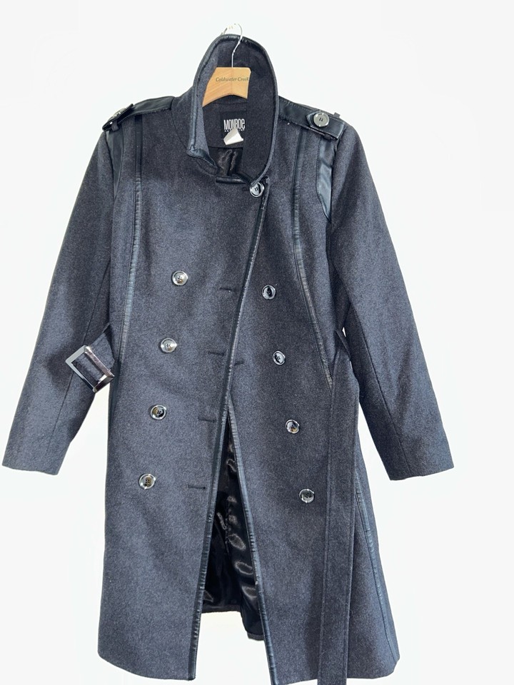 Monroe And Main Mantel Gr. XL Pea Coat Schwarz Jacke Damen Parka Wollmischung-