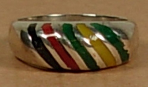 MEXIKO 925 STERLINGSILBER RING EMAILLE FARBIGE BÄNDER GRÖSSE 6-