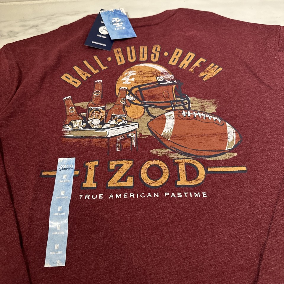 IZOD Men's Saltwater Soft Wash Long Sleeve Graphic T-Shirt Size Medium Football
