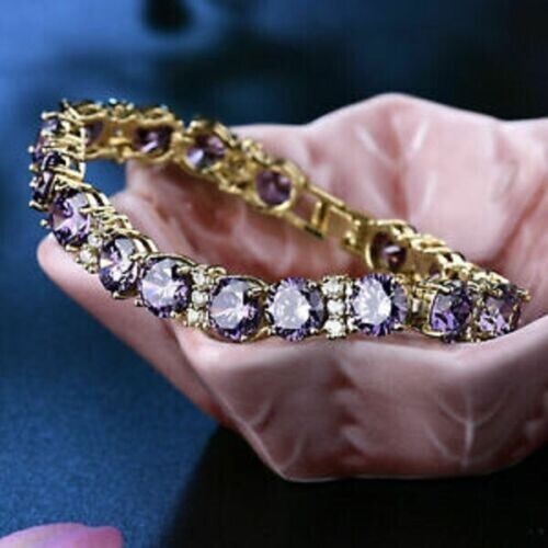 10 kt Rundschliff Amethyst & Diamant Damen Tennisarmbänder 14 K Gelbgold vergoldet-
