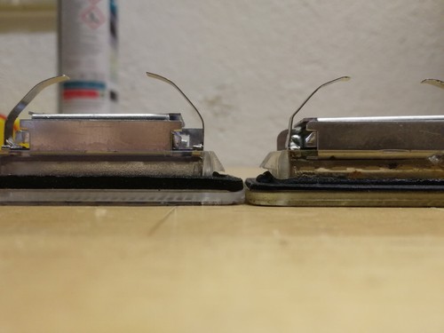 Die Haltezapfen sind zu eng am Gehäuse. Zudem sind sie auch noch zu weit nach innen versetzt. Daher halten sie nicht am A3 8P und 8PA! Links NEU, rechts ALT.