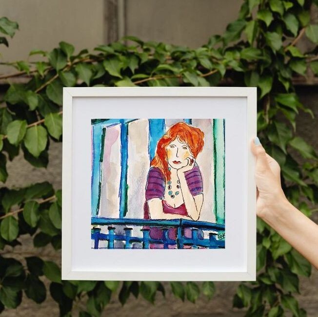 Weibsbild farbenfroh Druck vom original Aquarell auf Papier 20 x 20 cm