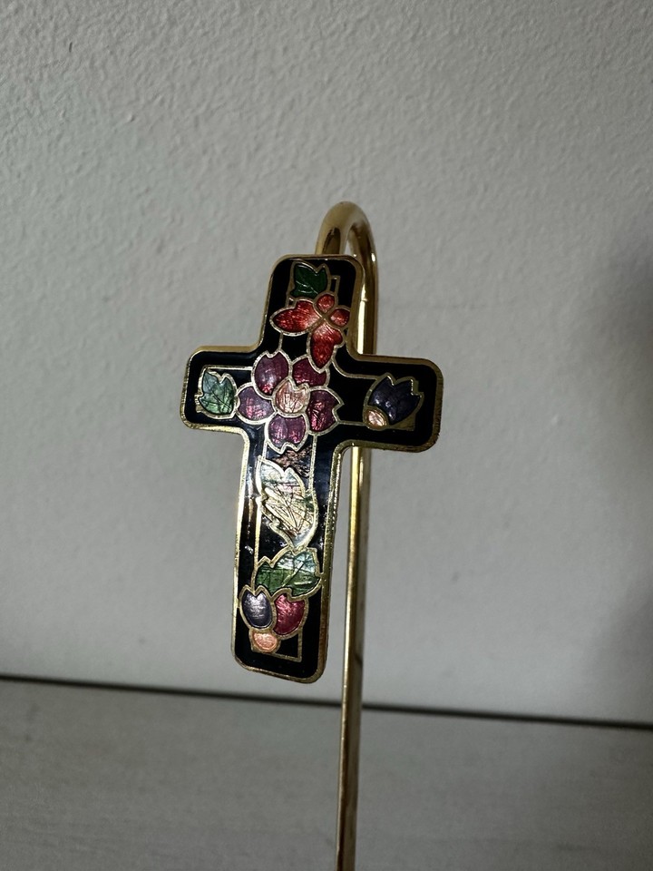 Vintage Gold Plated Brass & Enamel Cross BOOKMARKS Bible Book Mark Dark Blue