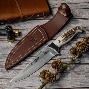 Messer Cudemn Rhyno Hunter mit Hirschhorn Griff und Lederscheide