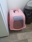 Rosa tragbare Kapuze Katze Katzentoilette abgedeckt Tablett Hand Tragen Reise Haustier Toilette-