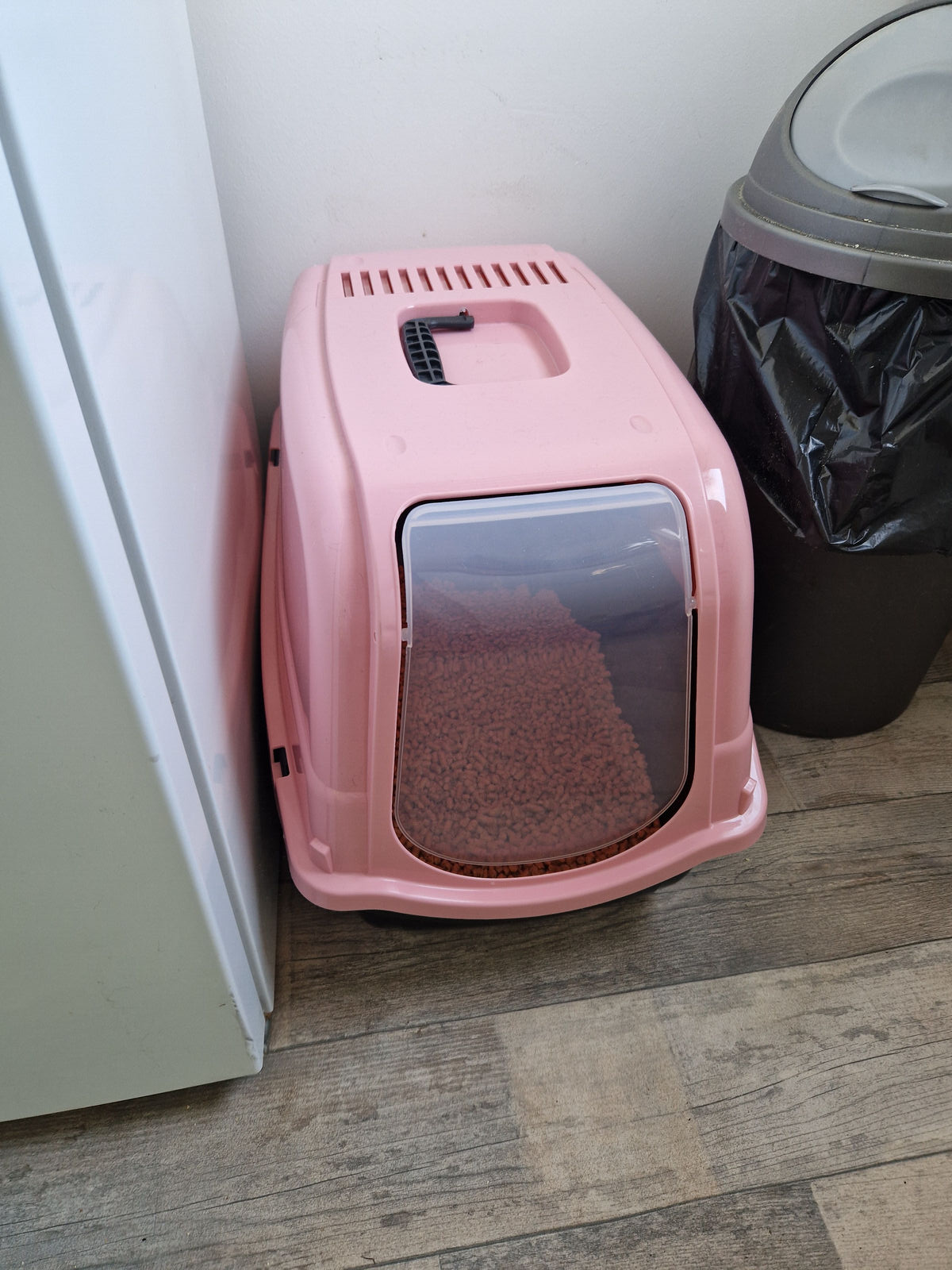 - i***u (702)- Bewertung vom Käufer.Vor über einem JahrBestätigter Kaufabsolutely love this it is one of the best things i brought my cat theres no more sweeping up cat litter that is being flicked everywhere it also covers some of the smell also she get to poo in private lool would defo recommend to anyone who is thinking of buying it their cat also i removed the flap due to her not liking it as soon as i removed the flap she loved it oh and also it is a pretty big box it will easy take a full 5 litre bag of cat litter