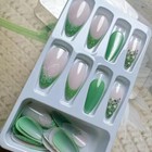 Glitter Light Green Press on Nails - Pointed Medium Shape, Spring Style I