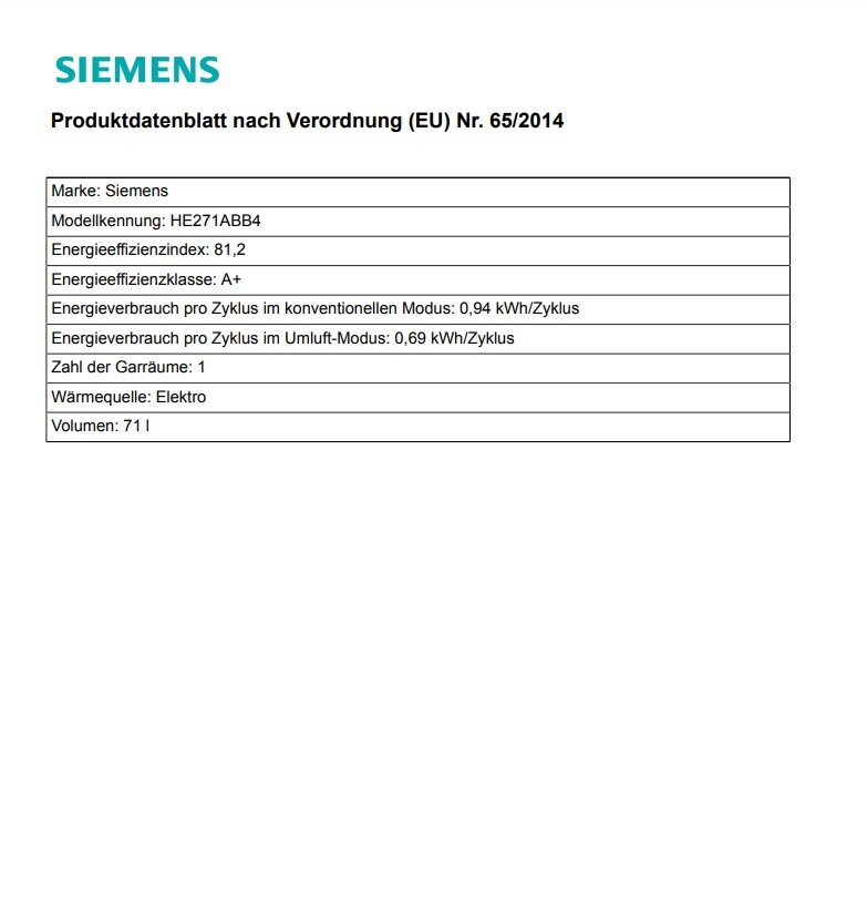 - Siemens Backöfen,