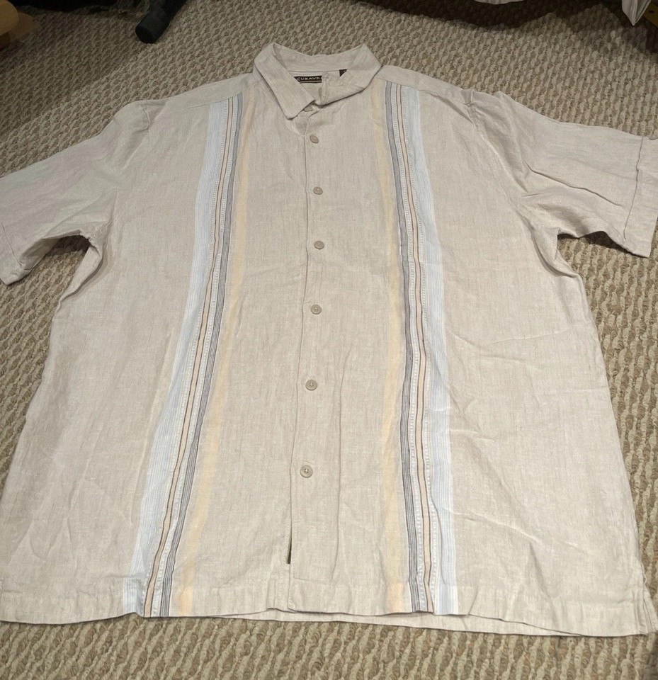 Cubavera Herren 100% Leinen Gr. 2X Knopfleiste Streifen Hemd #Resort #Urlaub-