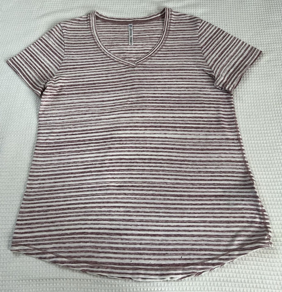 Kuhl Streifen V-Ausschnitt Kurzarm T-Shirt weiß koralle Freizeit aktiv Damen S-