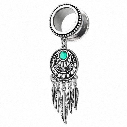 Flesh Ohr Tunnel Plug Piercing mit Traumfänger Feder Anhänger Kristall Türkis