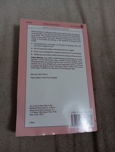 SECRETS OF ROOK ENDINGS (BATSFORD CHESS LIBRARY) By John Nunn LIKE NEW