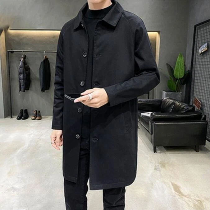 Neu Frühling/Herbst Herren Trenchcoat Lange Knopf Jacke Freizeit Revers Mantel Mode-