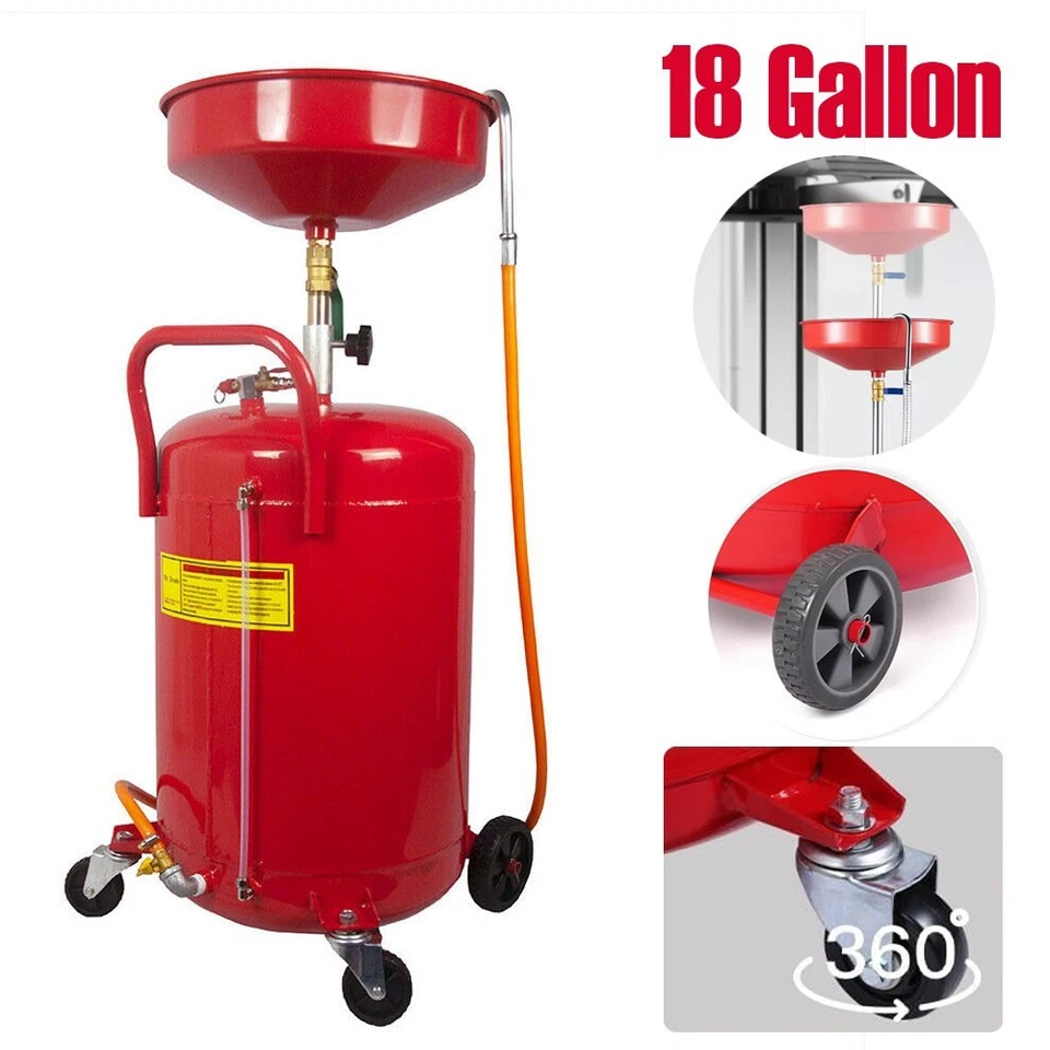 18 Gallonen Ölauffangwagen Ölauffangerät Rot mit Rollen für Kfz Auto Werkstatt