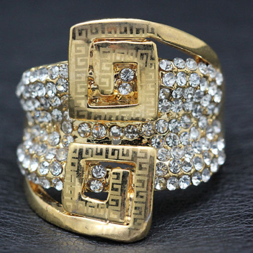 18k Gold Plated Big Ring made w Swarovski Crystal Gorgeous Cocktail Bold Ring-
