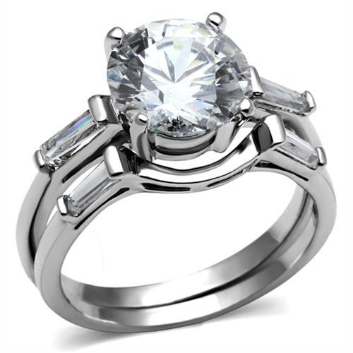 3,50 kt runder Brillant Baguette CZ Edelstahl Verlobungsring Ehering Set -