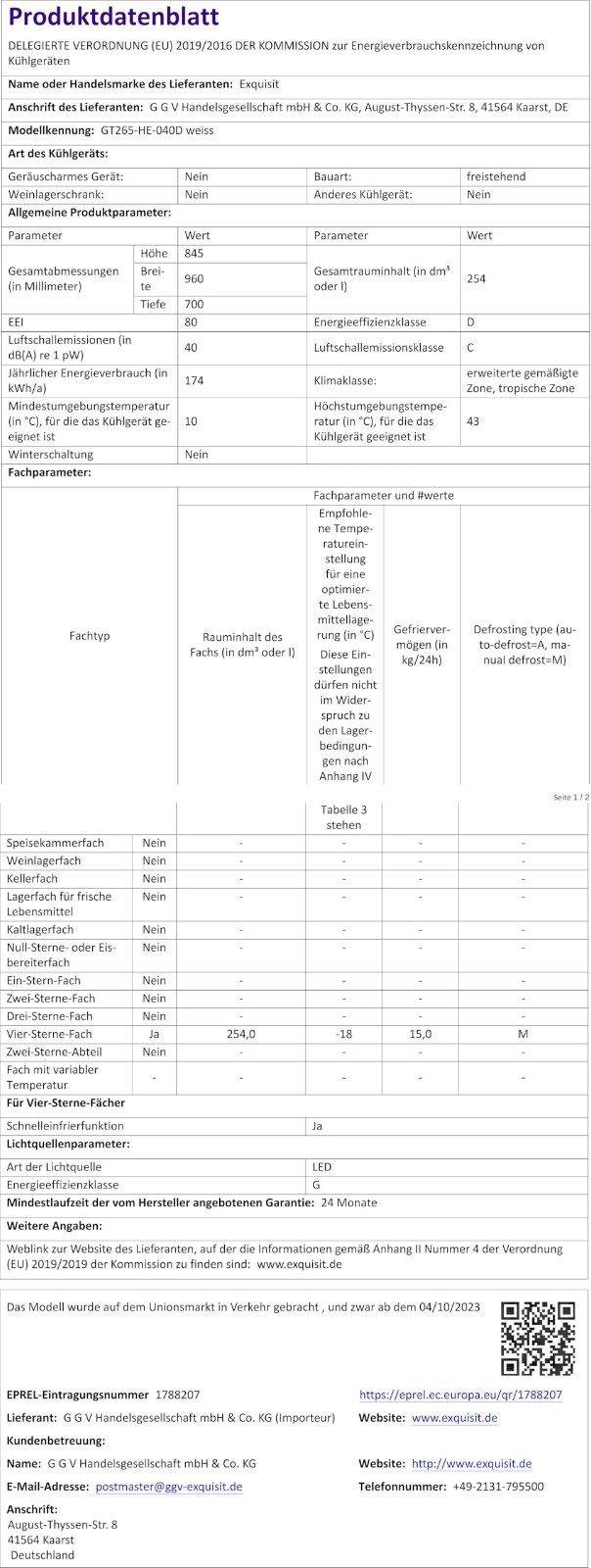 Exquisit GT265-HE-040D Gefriertruhe