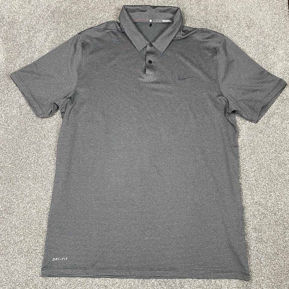 Nike TIGER WOODS Collection Shirt Mens L Golf Polo Grey Striped Performance Snap