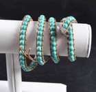 Acomo hellbraunes Leder rekonstituiert Türkis Wickelarmband 32" Handarbeit Handwerker P8-