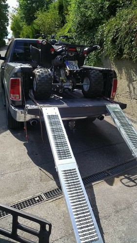 Sehr stabile auffahrrampe, einzig die Enden vor dem Auflieger sollten abgeschrägt werden da das Blech dann weiter aufliegt.