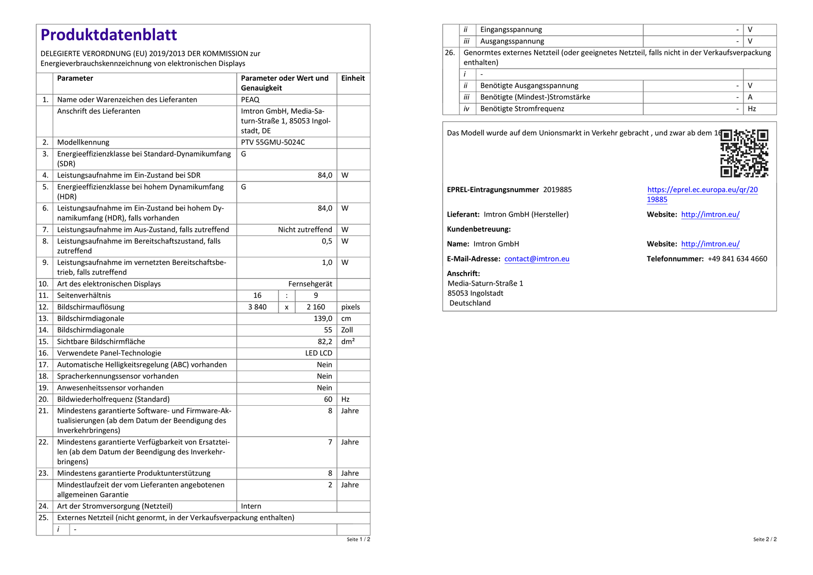 PEAQ PTV 55GMU-5024C Mini LED TV (Flat, 55 Zoll / 139 cm, UHD 4K)