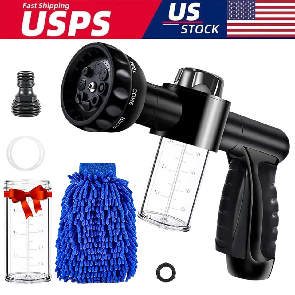 8 in1 Autowaschbürste Schaumpistole Gartenschlauch Düse Schaumkanone Flasche Seifensprüher