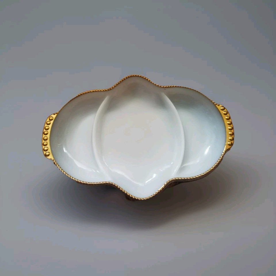 VINTAGE ANKER HOCKING FIREKING WEISSE OFENFORM MIT MAKELLOSER VERGOLDUNG -