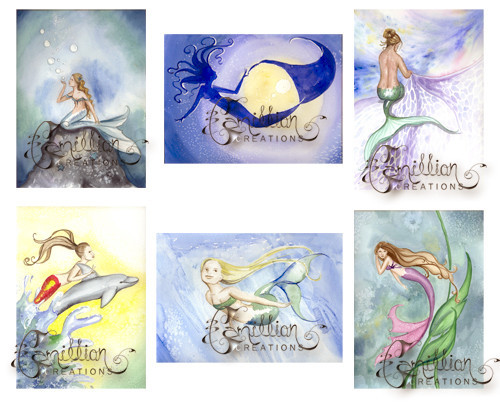 FAVORITES MERMAID NOTE CARDS from Original Watercolors by Camille Grimshaw