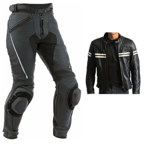 MEN'S MOTORBIKE COWHIDE LEATHER SUIT MOTORCYCLE SUIT JACKET TROUSER