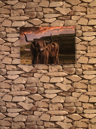 Großer schottischer Kuhhirsch Hirsch Kunstdruck braun grün gerahmt Leinwandbild-