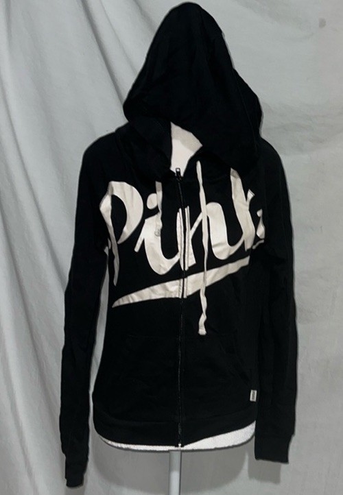 black & white (pearlescent) PINK Victoria's Secret hooded zip up jacket size xs