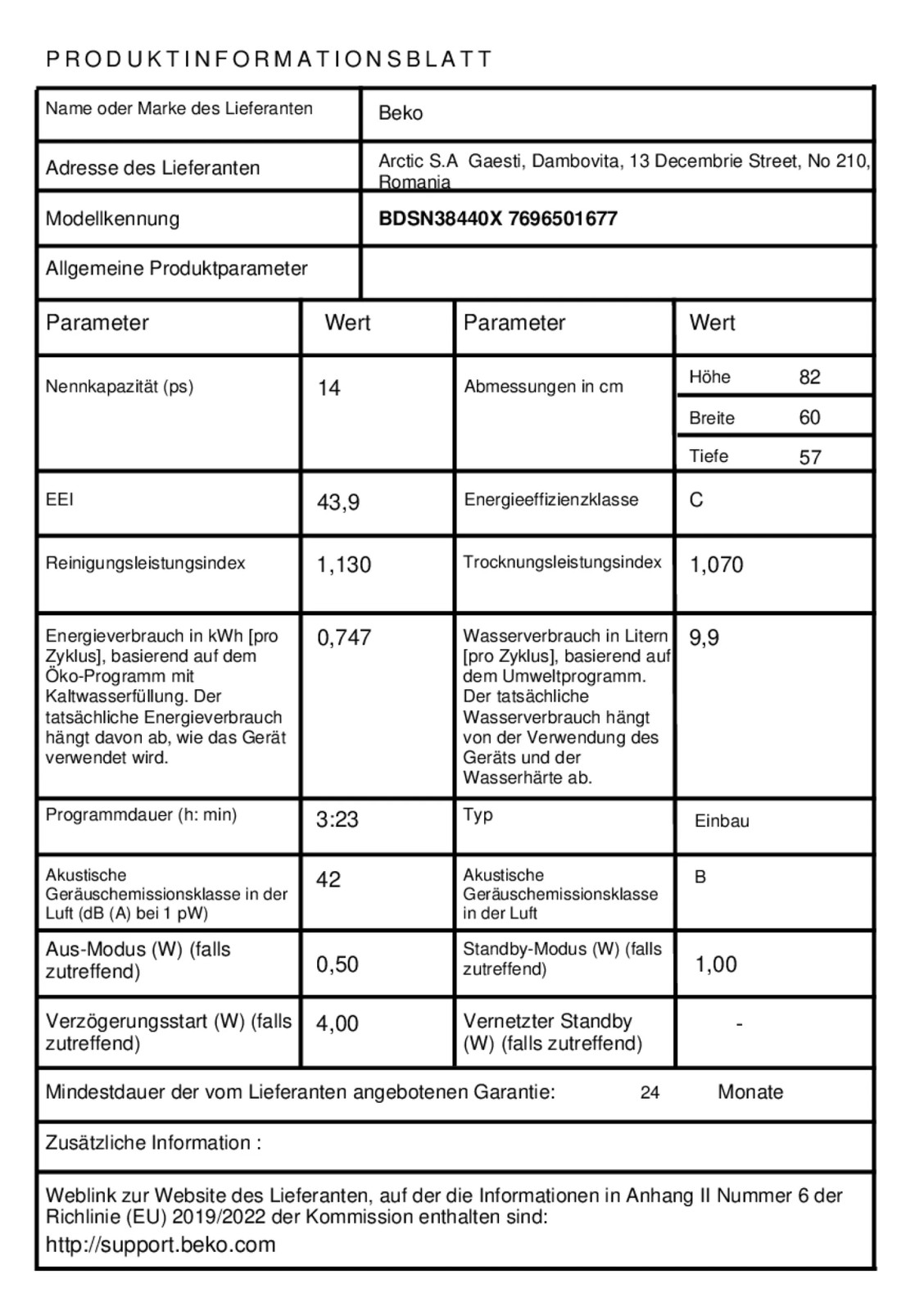 - Beko Geschirrspüler mit 14 Gedecken,