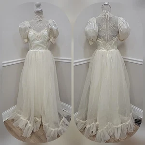 Vintage 80er Jahre Elfenbein Brautkleid Herzausschnitt Puffärmel -