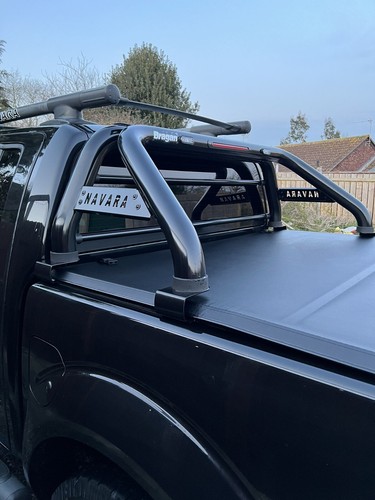 Überrollbügel + LEDs + Bremslicht für Nissan Navara D40 2005 - 2016 Edelstahl SCHWARZ-