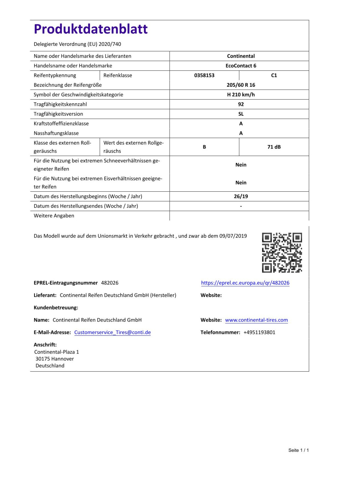 Reifenkraftstoffeffizienz (A-G)
