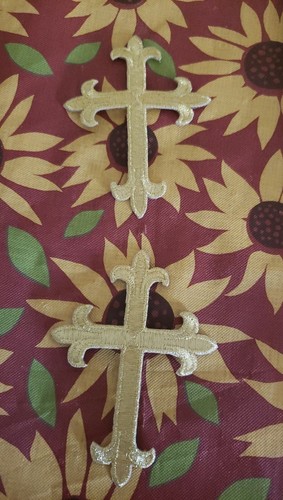 Religious Fleur de lis Cross Gold Metallic Christian Iron On Patch