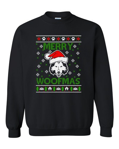 Merry Woofmas Husky Dog Puppy Paw Ugly Christmas Funny DT Crewneck Sweatshirt