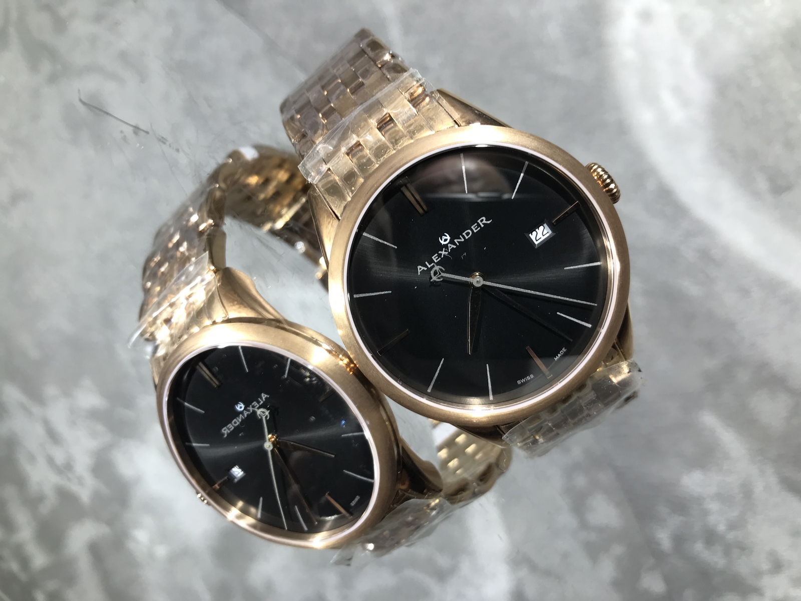 Alexander Herren Swiss Made Roségold Edelstahl Gliederarmband Quarz Uhr-