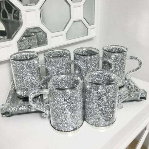Zerkleinerter Diamant Kristallgefüllte Tassen 6er Set Silber Küche Tee Kaffeetassen NEU-