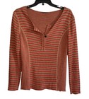 Lafayette 148 orange gestreiftes Langarmshirt V-Ausschnitt Knopf Small