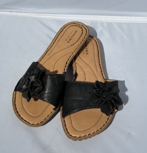 Sonoma Life Style flache Damen-Slipper Blumenmuster Blumen schwarz Größe 9 Medium-