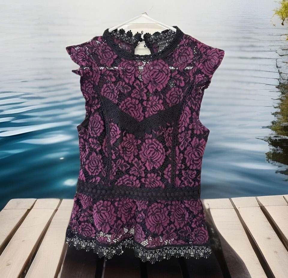 Süße Haute Monde schwarz-lila Whimsigoth Spitzen Bluse Tank Chic - Gr. S-