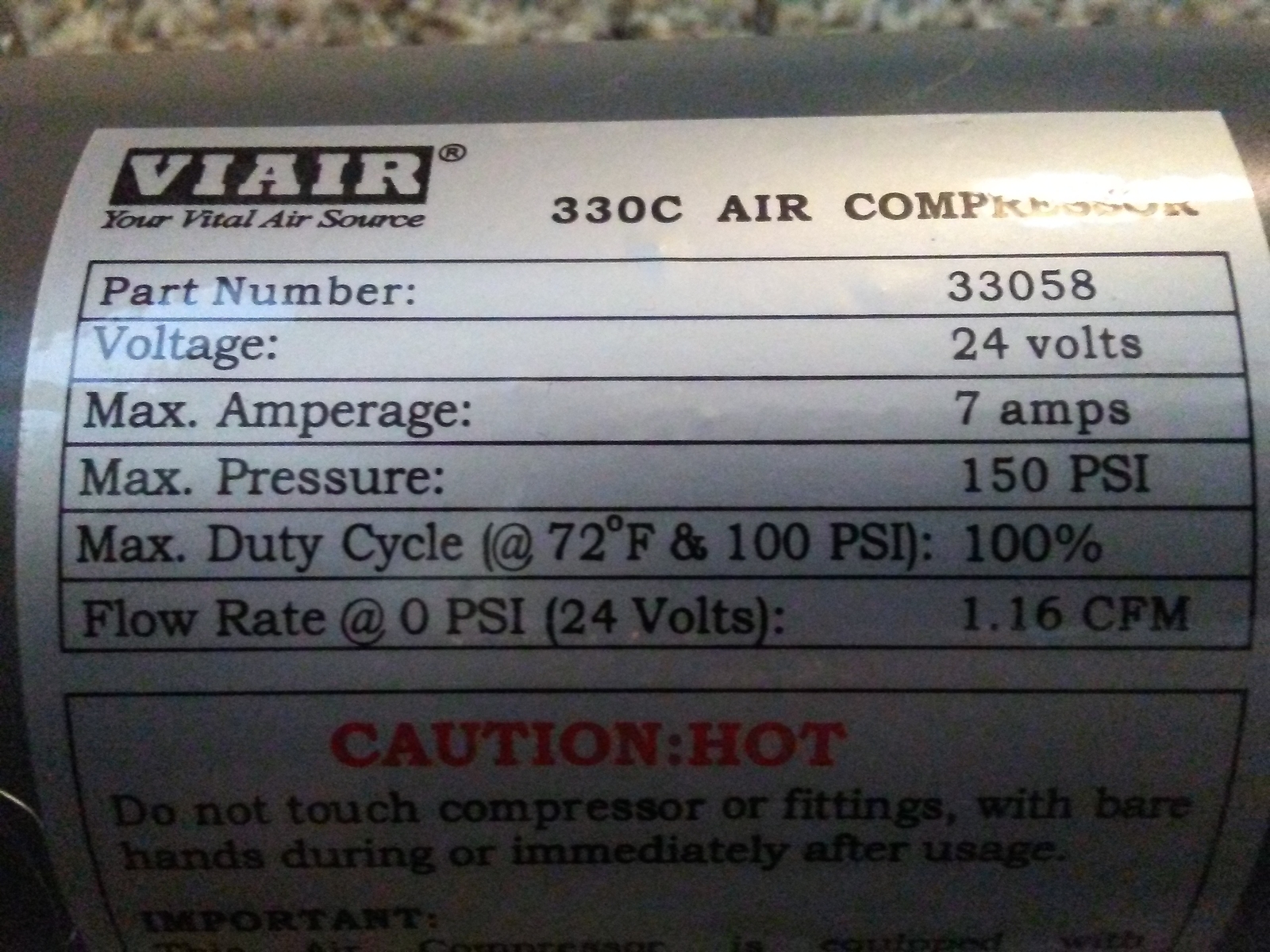VIAIR 330C-IG 24-Volt Truck Mount Air Compressor for Train Horns - 150 PSI