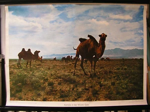 Schulwandbild Wandbild Altes Bild Kamel Kamele in der Wüste Gobi Asien 71x51cm