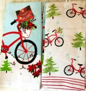 Urlaub Küche 2 Handtuch Set rot Fahrrad Weihnachten Winter Bäume Weihnachtsstern 16x26-