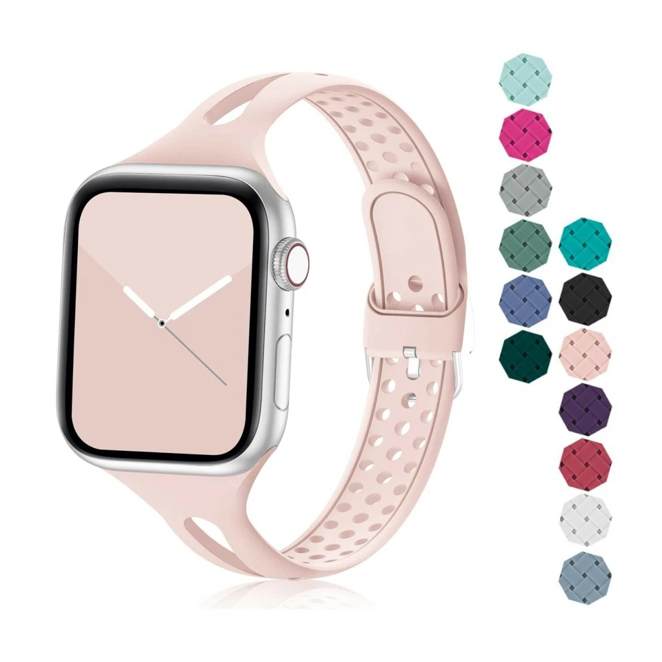 Silicone Narrow Sport Band for Apple Watch Series 9, 8, 7, 6, 5, 4, 3, 2, 1, SE❥