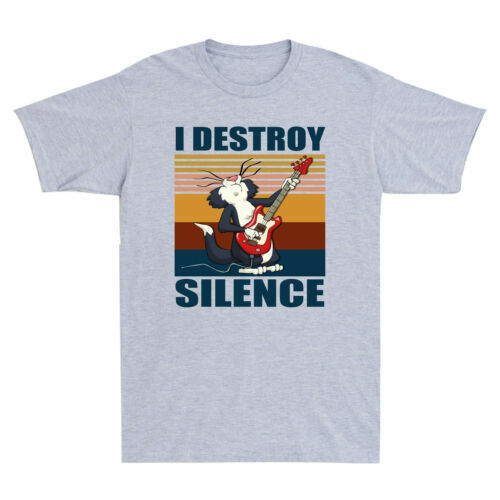 I Destroy Silence lustiges Katze spielendes Gitarren-Meme Herren-T-Shirt Baumwolle weiß-